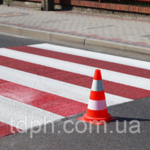 Фарба для дорожньої розмітки, фарба по бетону реалізується у відрах, додатково можна використовувати кульки, що відбивають світло, необхідні на ділянках підвищеної небезпеки. Завдяки відповідності до норм ДСТУ матеріали можуть застосовуватися без обмежень для обслуговування дорожнього полотна різних категорій.